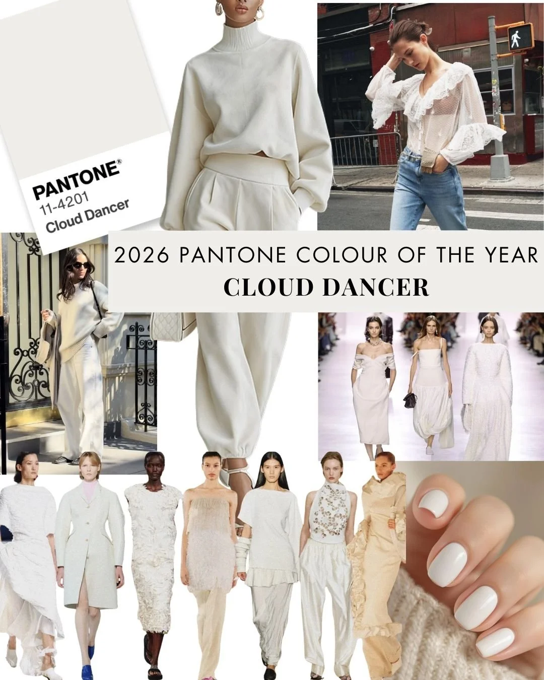 Cloud Dancer, a soft, wearable white, plays a central role throughout SS26. Unlike stark or clinical whites, this soft shade feels warm, airy and forgiving, making it far easier to wear, especially for those of us with warm skin tones.