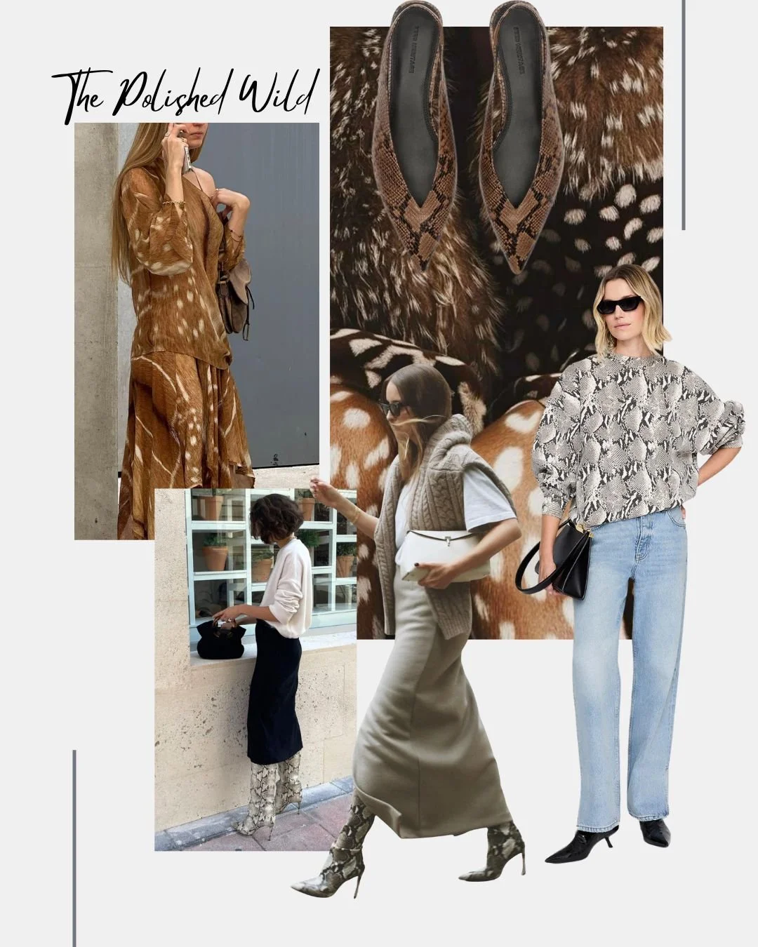 Leopard steps back slightly (does it ever really fully step back ladies?), making room for the likes of snake, deer and softer animal textures. The key to wearing this trend well is restraint. One animal-print piece paired with simple, neutral surroundings keeps the look polished and modern, rather than loud.
